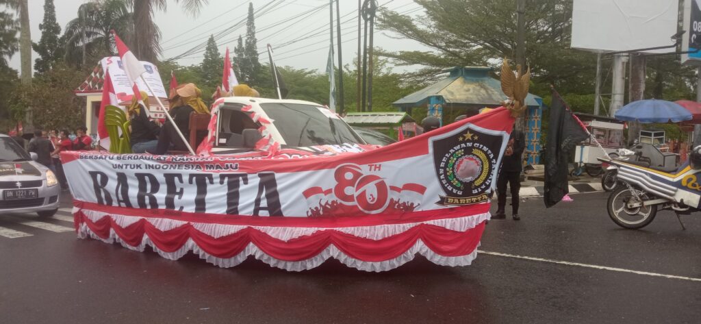 Pangkalpinang, Cyberlawnews.com – Dalam rangka memperingati Hari Ulang Tahun (HUT) ke-80 Republik Indonesia, Barisan Relawan Cinta Tanah Air (BARETTA) DPD Provinsi Kepulauan Bangka Belitung turut serta memeriahkan pawai kendaraan hias yang digelar di Kota Pangkalpinang, Rabu (3/9/2025).