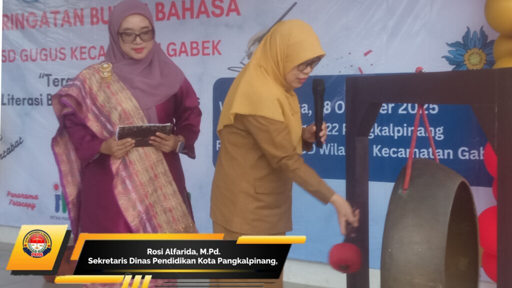 Acara dilanjutkan dengan sambutan Sekretaris Dinas Pendidikan Kota Pangkalpinang, Rosi Alfarida, M.Pd., yang secara resmi membuka kegiatan melalui pemukulan gong, sebagai tanda dimulainya peringatan Bulan Bahasa SD Gugus Kecamatan Gabek.