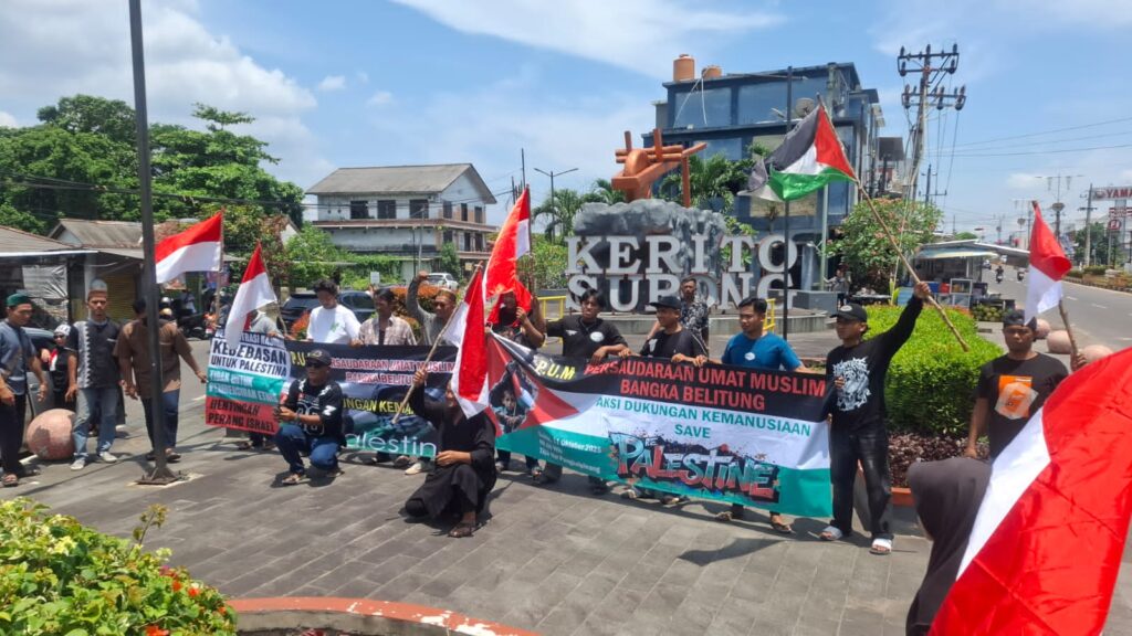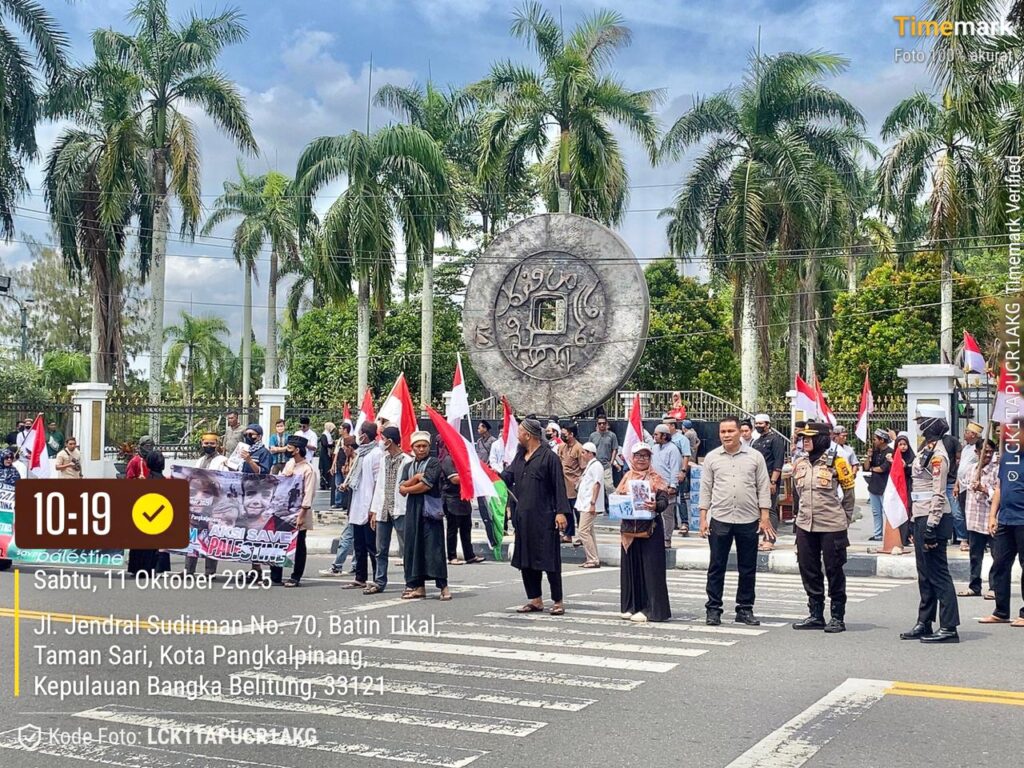 Pangkalpinang – Cyberlawnews.com, Ratusan massa yang tergabung dalam Persaudaraan Umat Muslim (PUM) Bangka Belitung) menggelar aksi damai bertajuk “Save Palestina” di kawasan Titik Nol Kilometer Pangkalpinang, Sabtu (11/10/2025).